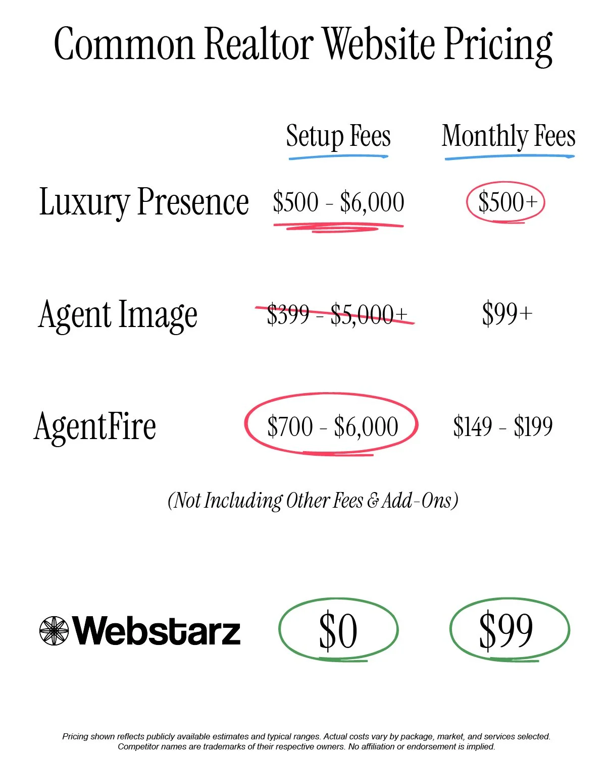 A cleaner look at what agents typically pay for a real estate website presence compared to Webstarz.